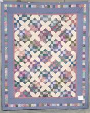 Catalogue Number: 077Sale Year: 2014Item Type: Bed QuiltColours: bluecreammultiDonor(s): Ruth Zehr, New HamburgQuilter(s): New Hamburg Thrift Shop QuiltersMachine Quilted: noDimensions: 82 x 101Description: Pieced