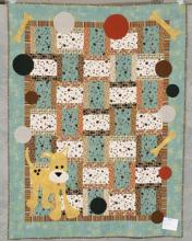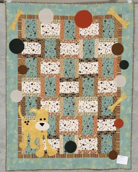 Catalogue Number: 105Sale Year: 2014Item Type: Bed QuiltColours: bluegoldbrownDonor(s): Quilters Nine Patch, ElmiraQuilter(s): Koren MartinMachine Quilted: noDimensions: 65 x 86Description: Appliqued & pieced