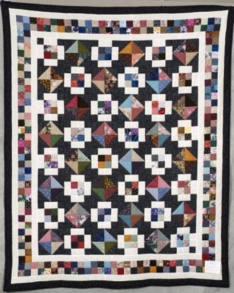 Catalogue Number: 109Sale Year: 2014Item Type: Bed QuiltColours: blackwhitemultiDonor(s): Velma Schlegel, TavistockQuilter(s): Renaissance FriendsMachine Quilted: noDimensions: 80 x 99Description: Pieced
