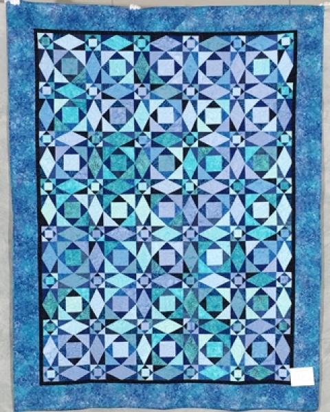 Catalogue Number: 156Sale Year: 2014Item Type: Bed QuiltColours: blueacquaDonor(s): Kelly Buxton, GuelphQuilter(s): Creative Sisters Quilt StudioMachine Quilted: yesDimensions: 73 x 95Description: PiecedThe Storm at Sea quilt reminds us to look for beauty admist life's storms.