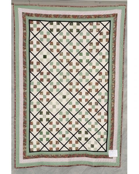 Catalogue Number: 164Sale Year: 2014Item Type: Bed QuiltColours: creamgreenmultiDonor(s): W-K United Mennonite WMCECQuilter(s): W-K United Mennonite WMCECMachine Quilted: noDimensions: 65 x 95Description: Pieced