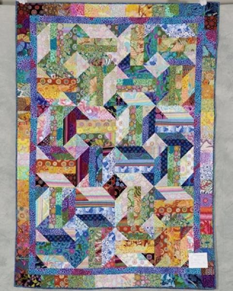 Catalogue Number: 166Sale Year: 2014Item Type: Small Bed QuiltColours: multiDonor(s): Renate Min-Oo, HamiltonQuilter(s): Renate Min-Oo, HamiltonMachine Quilted: yesDimensions: 57 x 81Description: Pieced