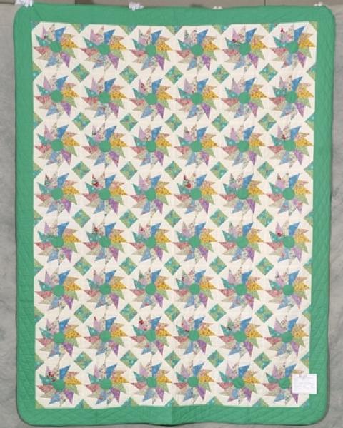 Erma made this quilt top in 1948 using a new sewing machine that she bought. After finishing it, she did not like the way it looked with the flannelette sheet she has used for a filler. So she took it all apart and replaced the sheet with batting and re-quilted it and bound it again.