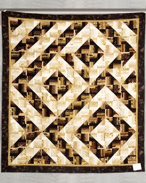 This quilt has approximately 80 different fabrics in it from my scrap and remnant stash. It was a pleasure to dig up all those previously worked with fabrics, leftover from other projects. The colours were selected with the relief quilt in mind, as I stitched I knew this would become a discussion center piece while being quilted. Is it a log cabin, no? A lot of seams in this quilt but it came together with little difficulty, how's that for a Rockin Rail Fence Quilt.