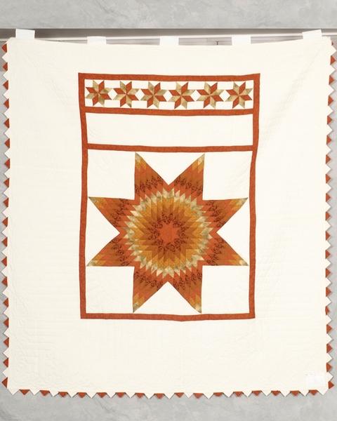 Catalogue Number: 169Sale Year: 2015Item Type: Bed QuiltColours: creamrustgreenDonor(s): Irvin & Ellen Jantzi, WellesleyQuilter(s): Erla KnarrMachine Quilted: noDimensions: 95 x 102Description: Pieced