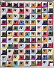 This was our first joint project and it worked out well. It is a truly scrappy quilt with fabric from both of us as well as a grandma and a mother-in-law.