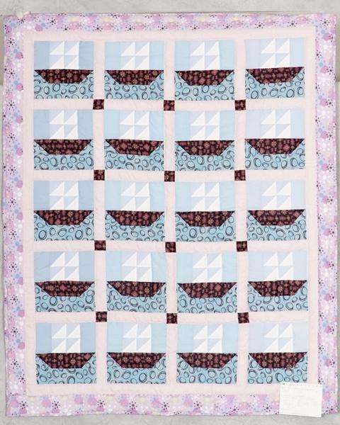 Catalogue Number: 198Sale Year: 2015Item Type: Crib QuiltColours: bluebrownpurpleDonor(s): Elsie Shoemaker, EloraQuilter(s): Elsie Shoemaker, EloraMachine Quilted: noDimensions: 45 x 54Description: Pieced