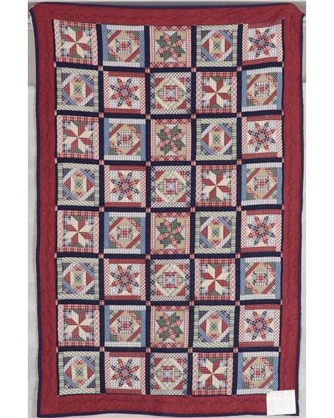 Catalogue Number: 199Sale Year: 2015Item Type: Sofa QuiltColours: burgundynavymultiDonor(s): Florence Schlegel, TavistockQuilter(s): Florence Schlegel, TavistockMachine Quilted: noDimensions: 49 x 75Description: Printed Fabric Whole Cloth
