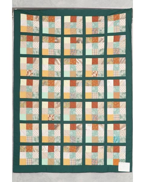 Catalogue Number: 200Sale Year: 2015Item Type: Bed QuiltColours: dark greenmultiDonor(s): Grace WMCEC, St. CatharinesQuilter(s): Grace WMCEC, St. CatharinesMachine Quilted: noDimensions: 58 x 80Description: Pieced